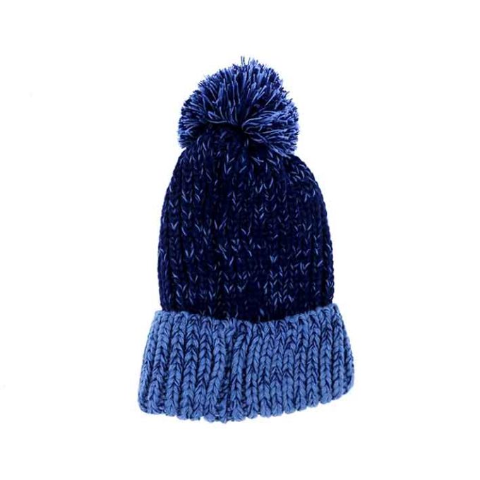 Bonnet Bleu Pompon Bicolore