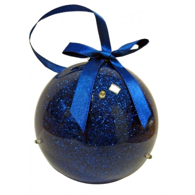 Boule de Noël scintillante à leds, se recharge à l’aide d’une pile jetable.