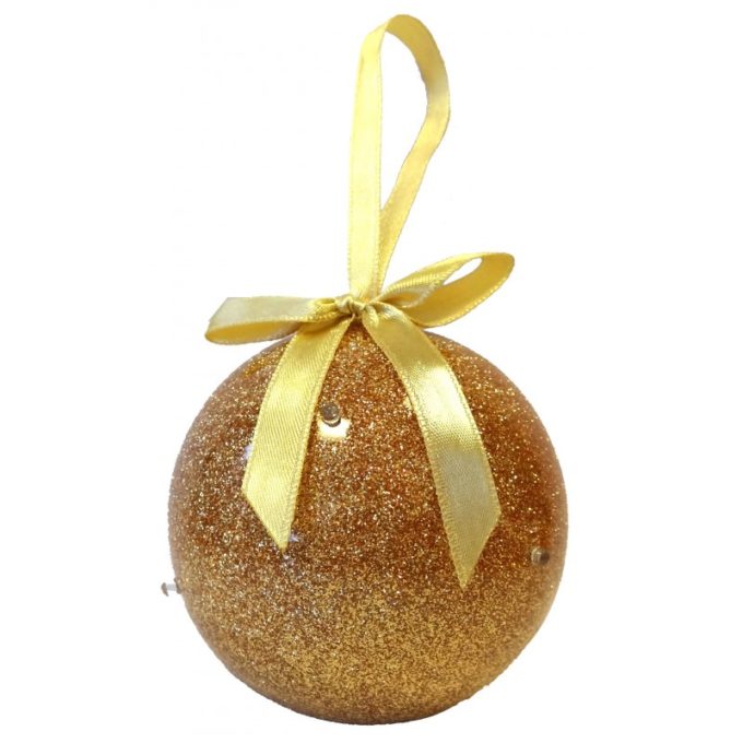 Boule de Noël scintillante à leds, se recharge à l’aide d’une pile jetable.