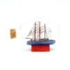 Petite bouteille en verre avec un voilier à l’intérieur.