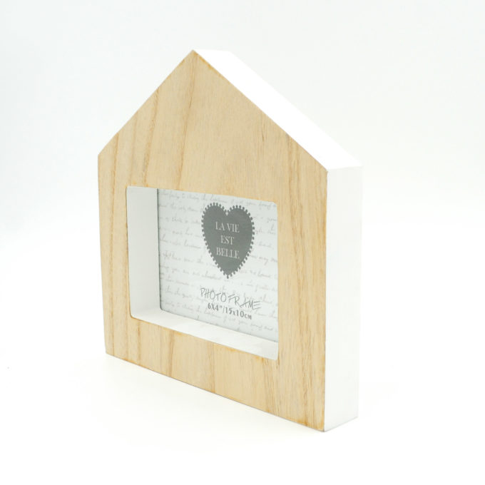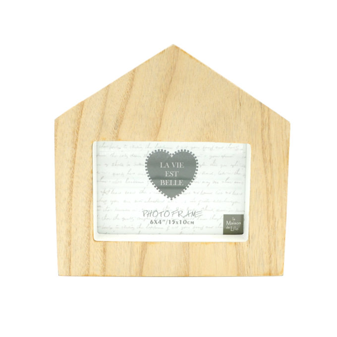 Cadre photo 10 x 15 cm format horizontal en forme de maison en bois couleur naturel.
