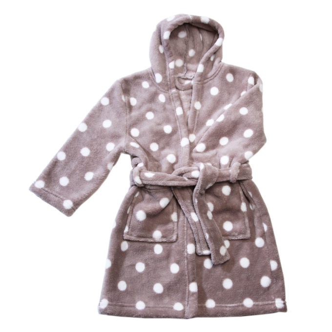 quantité de Peignoir à pois taupe/blanc enfant 2/4 ans