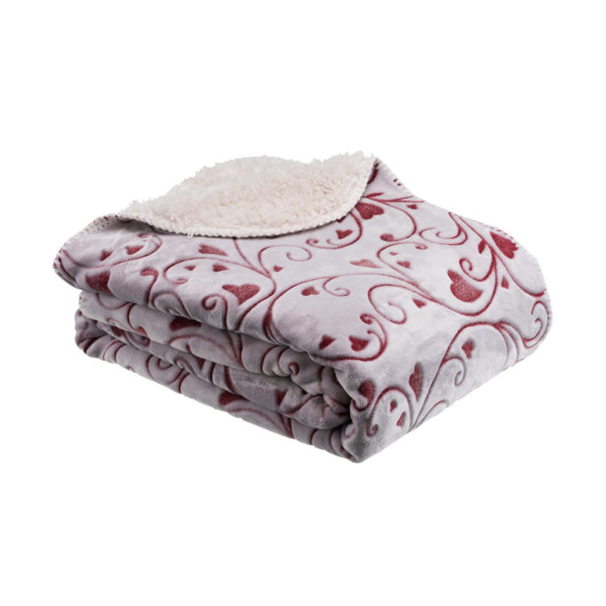 Plaid floral coeurs rouge doublé sherpa de La Maison de Lilo.