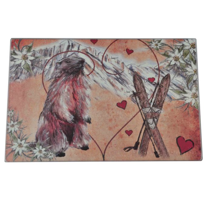 Planche à découper “Marmotte”, planche en verre trempé, résistante à la chaleur.