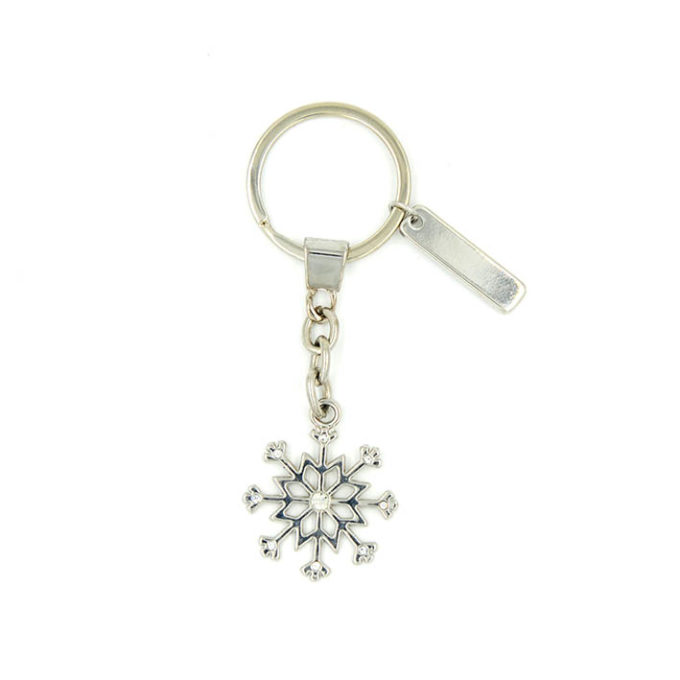 Porte-clés flocon avec strass, longueur 10,3 cm.