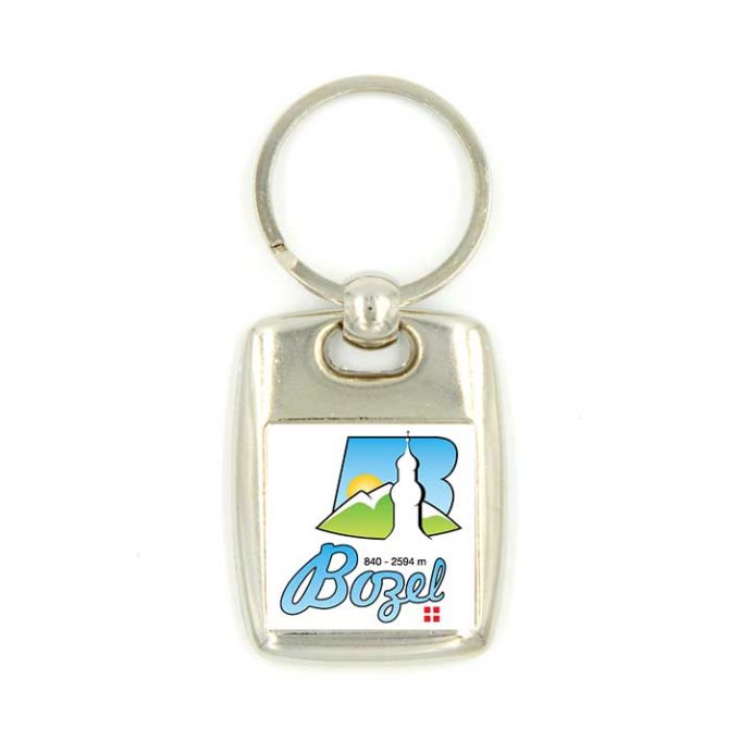 Porte-clés en métal avec sur les 2 faces du porte-clés le logo de Bozel.