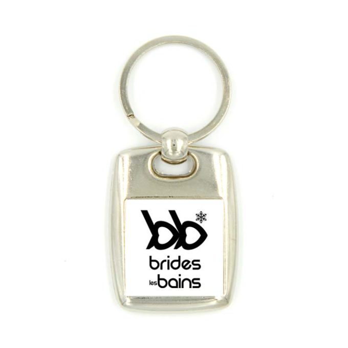 Porte-clés en métal avec sur les 2 faces du porte-clés le logo noir “BB” Brides-les-Bains.