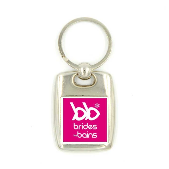 Porte-clés en métal avec sur les 2 faces du porte-clés le logo rose “BB” Brides-les-Bains.