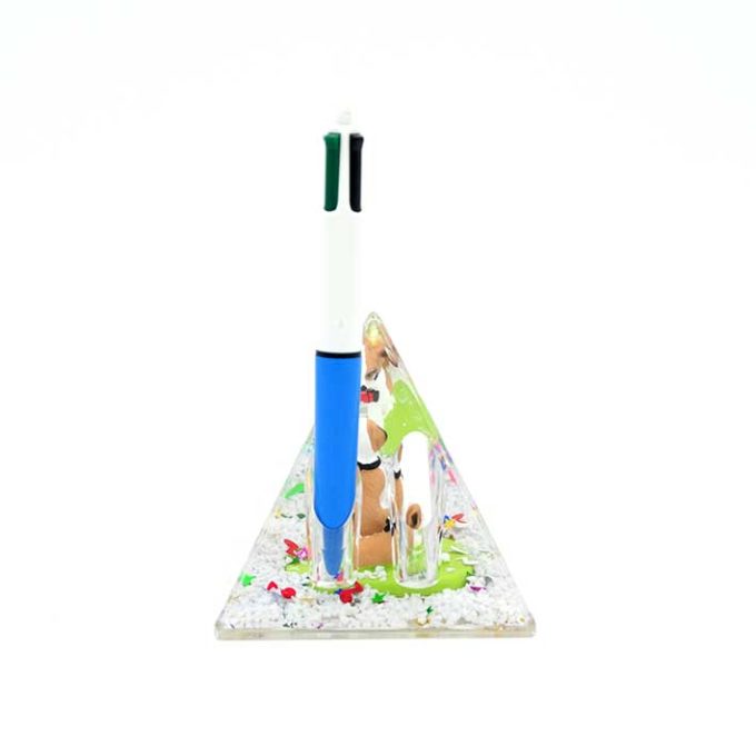 Pyramide à neige grand Saint-Bernard. A l’arrière de la boule à neige se trouve deux emplacements pour deux stylos (voir photo en exemple).