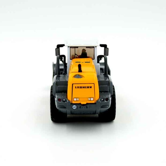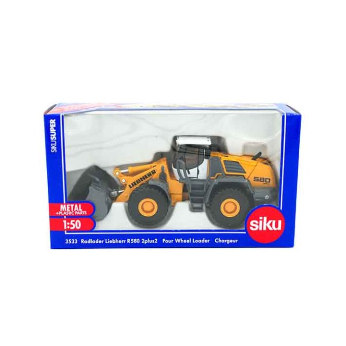 La nouvelle ligne de construction de la grande série de chargeuses sur pneus Liebherr disponible désormais comme modèle SIKU à léchelle 1:50. Des détails tels quun essieu arrière oscillant, le joint articulé central et la mécanique détaillée du bras de pelle appuient en plus de la conception optique fidèle aux détails lexigence élevée du modèle. Des panneaux ouvrables situés à larrière de la machine découvrent le moteur représenté avec précision. Le modèle est presque entièrement fabriqué en métal.