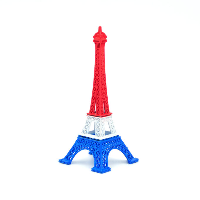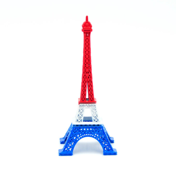 Tour Eiffel bleu, blanc, rouge. Hauteur : 13cm.